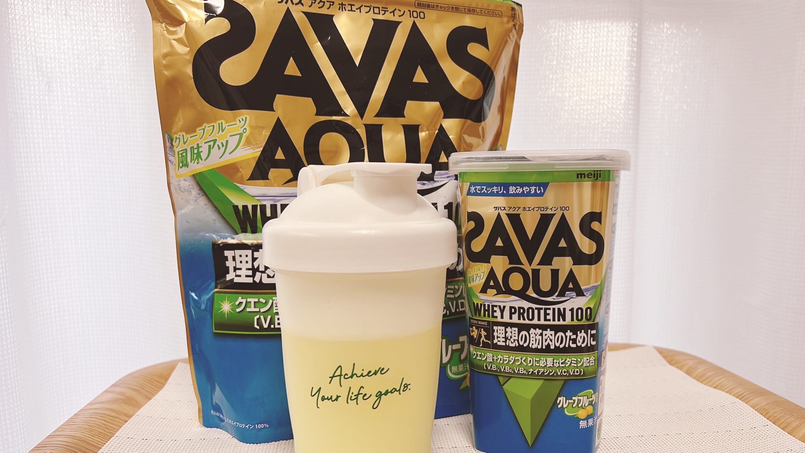 今回は、水で簡単に飲める美味しいプロテイン「ザバス グレープフルーツ味」をご紹介しました!