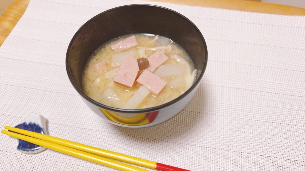 と言っても、普通のお味噌汁にポークを入れるだけなのですが